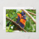 Le Rainbow Lorikeet se distingue par son bec rouge vif et son plumage coloré. Les deux sexes se ressemblent, avec une tête et un ventre bleus (mauve), des ailes vertes, une queue et un dos, et une poitrine orange/jaune. On les voit souvent dans des troupeaux bruyants et rapides, ou dans des pièces communes à la tombée de la nuit.