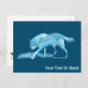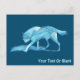 Un loup bleu stylisé (Canis lupus) projette une ombre en traversant un terrain enneigé. Ajoutez votre propre texte.