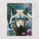 Carte Postale Loup debout dans la rivière avec fleurs d'annivers