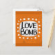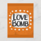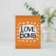 "Love Bomb" est un design de texte amusant avec une forme d'accent blanc entourée de points texturés fantaisistes blancs.