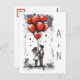 Célébrez l'amour avec notre charmante carte postale de la Saint-Valentin avec un couple tenant une myriade de ballons en forme de coeur. L'avant permet la personnalisation avec les premières lettres de vos noms, créant une touche fantaisiste. Un merveilleux portrait de l'amour à travers la joie des ballons partagés !