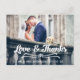 LOVE ET MERCI TYPOGRAPHIE MERCI POSTCARD. Design par Elke Clarke© pour MonogramGallery imprimé par Zazzle. Envoyez votre message de remerciement mariage en tant que nouveaux mariés à vos amis et votre famille en utilisant ce rétro, merci carte postale photo mariage avec les mots "Amour & Merci" écrit dans un blanc gras écriture typographie script texte superposition. Remplacez l'exemple de photo par le vôtre. Ajoutez votre message de remerciement personnel sur le dos ou laissez vide et écrivez votre message en personne. Autres couleurs disponibles.
