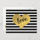 Carte postale "Amour" customisée : Chic Gold Faux Metallic Heart Design/Whimsical "Amour" Typographie/Stylish Black And White Stripes Arrière - plan/Peut être personnalisé avec votre propre message spécial
