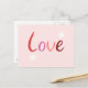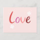 Le mot amour en écriture manuscrite en rouge et rose sur un bébé arrière - plan rose avec le coeur en haut à droite et en bas à gauche pour créer des pétales de trèfle ou de fleur.