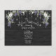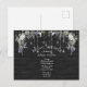 Ceci est une belle carte postale de Fête de Mariage rustique avec un panneau de grange noir, quelques ensembles de lumières de guirlande argentées scintillantes et une glycine violette à l'aquarelle
