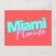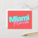 Design typographique moderne et coloré caractéristiques "Miami Florida" en aqua et texte de néon rose sur saumon / arrière - plan de corail