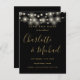Avec de jolies guirlandes lumineuses et des noms de style signature, cette élégante carte de save-the-date noir et or peut être personnalisée avec les détails de votre jour de mariage spécial en lettrage or moderne. Conçu par Thisisnotme©