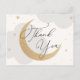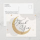 Merci à vos invités de célébrer la maman à être! Baby shower à thème Moon et Stars merci carte postale avec nuages d'aquarelle et étoiles d'or avec lune de gloire d'or. Personnalisez avec vos informations ou cliquez sur "Cliquez pour customiser plus loin" pour modifier les styles, la taille et les couleurs des polices.