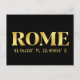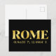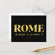Carte postale Lux représentant les coordonnées de latitude et de longitude de Rome, Italie, en police de caractères dorée sur fond noir.
