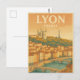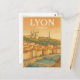 Vertical 2:3 vintage travel poster of Lyon — France, elevated view over the Old Town (Vieux Lyon) with the Basilica of Notre-Dame de Fourvière on the hilltop, and the Saône River curving below with historic bridges.
