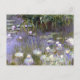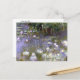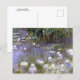 Carte postale d'art avec le tableau impressionniste Water Lilies (vers 1922) de Claude Monet (18401926). Cette oeuvre fait partie d'une série de peintures de nénuphars de Monet, inspirées de ses propres étangs à Giverny, France. Un étang avec nénuphars roses sur lavande a hué l'eau et les roseaux verts.
