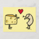 Carte postale mignonne macaroni et fromage avec un grand coeur rouge pour montrer que mac aime le fromage. nouilles de pâtes adorables et morceaux de fromage avec bras tendus les uns vers les autres. Design original avec copyright enregistré par Fun T-shirts, Inc.