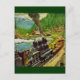 Illustration vintage d'une machine à vapeur sur des voies ferrées près des montagnes américaines de l'ouest