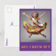 Oui Monsieur !! Elle a réussi !! La dame est heureuse parce qu'elle est officiellement à la retraite, alors elle saute joyeusement et à partir de maintenant elle aura du temps pour elle-même. Elle porte une robe colorée et lumineuse qui correspond à ses chaussures. La banderole sur sa poitrine lui rappelle qu'elle vient de réussir. Carte postale personnalisable pour féliciter votre collègue adoré.