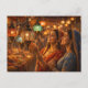 Zwei Frauen auf einem traditionellen Markt im warmen Licht von Mosaik-Lampen.