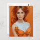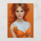 Une magnifique femme aux cheveux longs habillée en orange et blanc avec un style de portrait arrière - plan orange