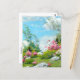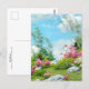 Carte postale d'art avec le paysage, May Morning (1908) de Charles Courtney Curran (1861-1942). Il était un peintre impressionniste américain, réputé pour ses représentations de figures et de paysages, en particulier de belles femmes dans des cadres tranquilles Le tableau présente des rhododendrons roses le jour du printemps avec une femme en robe blanche qui profite du paysage.