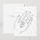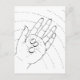 Main ouverte, avec trois bijoux. Les rayons du soleil se réfléchissent en arc de cercle à l'arrière-plan. Colorez cet élément vous-même à l'aide de stylos feutres ou gel, de crayons ou d'autres supports, vous pouvez colorier cette carte postale avec votre propre style artistique. Ou laissez le destinataire de la carte faire la coloration.