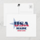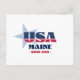 Carte postale Maine. Un design de typographie créatif qui résume l'essence du Maine avec des couleurs audacieuses, rouge, blanc et bleu, et des éléments patriotiques, dont des étoiles et des rayures.