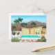 Dotée d'une charmante représentation d'une maison moderne jaune du milieu du siècle et décorée dans un jardin de tiki, cette carte postale présente des lignes épurées, des formes géométriques audacieuses et des couleurs vives qui incarnent l'esthétique emblématique du milieu du siècle. Parfait pour ajouter une touche de sophistication vintage et de l'atmosphère désertique de Palm Springs à votre correspondance.