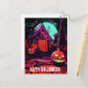 Carte Postale Maison d'Halloween rose orange violet hantée