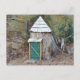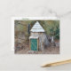Cette carte postale présente une maison d'elfes qui a été trouvée dans les bois de la ferme d'arbres de Noël Winterberry à Killingworth, Connecticut.