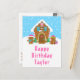 Carte Postale Maison en pain d'épice rose et bleu Joyeux Anniver