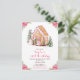 Cette invitation à la fête d'anniversaire élégante et festive comprend une maison en pain d'épices couleur aquarelle et de belles fleurs de poinsettia roses. Le texte combine écriture manuscrite et polices sans serif pour un look élégant et moderne. Le bonhomme de neige, les pins décorés et la couronne de fleurs apportent une touche festive. C'est parfait pour les fêtes de Noël.