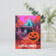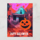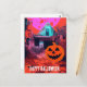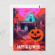 Carte Postale Maison Halloween rétro Hantée Rose Orange bleu