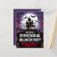 Donnez le ton étrange pour votre fête d'Halloween avec cette éffrayante invitation à la maison hantée ! Doté d'une demeure sombre et hantée sous une pleine lune, de lanternes de cric-à-brun, de chauves-souris volantes et d'arbres brumeux, cette invitation est idéale pour un événement fantomatique et effrayant. Personnalisez avec vos détails de fête et les invités invitations à une soirée de plaisir spottaculaire