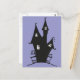 Maison hantée déplaisante croisée dans une silhouette noire sur un arrière - plan violet.