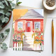 Carte Postale Maison rouge | Jolie peinture aquarelle