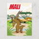 Carte postale de voyage au Mali avec une merveilleuse antilope de dessin animé inspirée des figurines chiwara du peuple bambara. Illustration ©2018 Michael C. Paul https://mikepaulart.com