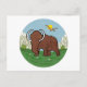 Un mammouth laineux brun regarde le spectateur. A élevé les défenses, le manteau poilu, les petits yeux et l'oreille et un grand tronc long.