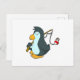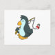 Carte Postale Manchot à la pêche avec une canne à pêche