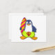 Carte Postale Manchot en surfeur avec planche de surf