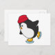 Carte Postale Manchot faisant du patinage sur glace avec un chap