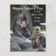 Carte postale fête des pères avec une belle photo d'un singe mâle alpha Mandrill au visage rouge et blanc coloré, assis derrière un jeune singe mandrill. Message personnalisable : Bonne Fête des pères à l'Alpha Male de la troupe. Modifier ou supprimer le type de la page produit