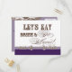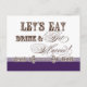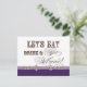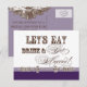 Des polices élégantes et amusantes annoncent le message, "Mangeons, buvons et marions-nous !" sur une carte postale d'invitation à la douche nuptiale fantastique. Dans une palette de couleurs propre, croustillante, lavande, prune violette, chocolat et blanc, c'est le meilleur de vintage avec une touche moderne. Ajoutez facilement votre invitation à la douche nuptiale au verso.