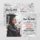 Partagez les nouvelles joyeuses d'une fête de remise de diplômes à venir avec photo personnalisée enregistrer la date fausse carte postale invitations. L'image et le libellé de ce modèle sont simples à personnaliser et les couleurs peuvent être changées avec l'outil de design Zazzle. Customisez-le avec le nom du diplômé, l'année de classe et d'autres détails de faire-part de votre choix. Le design rose, noir et blanc présente un arrière - plan en faux marbre, un casquette en faux mortier, une élégante calligraphie moderne, une typographie vintage classique et une photo préférée, telle qu'une photo de haut niveau ou une image de la cérémonie de début. Veuillez noter que l'or rose est imprimé en couleur sombre rose, et non métallique. Ces cartes de graduation élégantes sont une façon élégante de partager une fête spéciale avec votre famille et vos amis. Félicitations au diplômé !