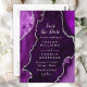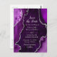 Cette élégante et glamour, à l'exception de l'invitation à la date, dispose d'un arrière - plan en marbre violet agate avec des accents de parties scintillant faux argent. Le texte combine écriture manuscrite et polices sans serif modernes pour un look élégant et sophistiqué. Il conviendra parfaitement aux mariages d'automne et d'hiver.