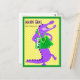 Cette carte postale colorée de Mardi Gras a les couleurs traditionnelles - un alligator violet joue d'un accordéon vert et porte des perles d'or. L'arrière - plan est pois jaune. Un texte dit Mardi Gras, La Nouvelle-Orléans, LA, mais vous pouvez le customiser.