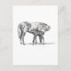 Un dessin libre noir et blanc d'une jument et de son poulain nouveau-né.