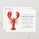 Cartes d'invitation personnalisées au thème du homard rouge pour votre prochaine soirée Cuisson du Homard ou événement de fruits de mer. Il présente une illustration de style aquarelle d'un homard rouge. Autour de cela se trouvent des espaces pour vos informations d'événement uniques.