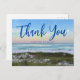 Cette carte postale de remerciement de mariage à la plage personnalisée et pittoresque présente le magnifique coucher de soleil rose et orange touchant doucement les vagues de l'océan au-dessus du sable et de l'herbe marine par une belle journée à Destin, en Floride. Jolies cartes postales de bord de mer pour un couple qui a eu un mariage de destination à Hawaii ou en Floride.