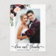 Mariage Amour et Remerciements Aquarelle Floral Bourgogne Bleu Élégant Écriture Photo Carte de Remerciement