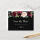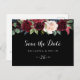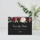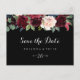 Ce mariage botanique noir rustique, sauf la carte postale date, est parfait pour un mariage classique. Le design est composé de fleurs bordeaux, rouges, navy, bleues et rousses rayonnantes et gracieuses peintes à la main dans un arrière - plan noir, inspirant beauté naturelle.