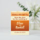 Invitez les gens à passer un week-end d'automne à célébrer votre mariage ou un autre grand événement en faisant la fête avec ces cartes "Save the Date" de la collection Autumn City dans les belles couleurs d'automne orange et crème. Il s'agit de la version verticale, il existe également une version horizontale dans la collection. Trouvez des articles de mariage et de fête coordonnés et apparentés dans la collection de design Autumn City. La partie supérieure de l'image de fond a un contour vague qui pourrait être une silhouette de ville ou des arbres, de sorte qu'elle peut être utilisée pour presque n'importe quel endroit, ville, banlieue ou campagne, dans une lumière orange automnale. Le reste du design a un fond crème. Au milieu du fond crème se trouve un rectangle orange foncé. Il y a des modèles pour le texte dans la partie supérieure, dans le rectangle, et au-dessus et en dessous du rectangle. Comme indiqué, le texte dans le rectangle est de la même couleur que le fond. Le reste du texte est affiché dans la même couleur orange foncé que le rectangle. Le dos comporte un modèle pour le texte, ou vous pouvez laisser ceux-ci vides.