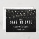 Mariage rustique noir tableau noir enregistrer les cartes postales de date avec des lumières à cordes sur un arrière - plan noir tableau noir.
