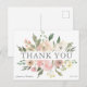 Belle carte de remerciement avec des pivoines roses pâles aquarelles et un script élégant sous les feuilles de eucalyptus vert sauge et les fleurs jolies. Une carte de mariage botanique chic pour remercier vos invités. Personnalisez ces jolies cartes avec vos noms et date de mariage.